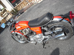 Jeffs new build started with a stock chica gooseneck frame i welded the seat mount rear pegs and oil filter mount. I got the tins and made a new rear mount for the gas tank. Then i sprayed it all black with brushed satin chrome scallop panels,and pinlined in red followed by flat HOK klear.